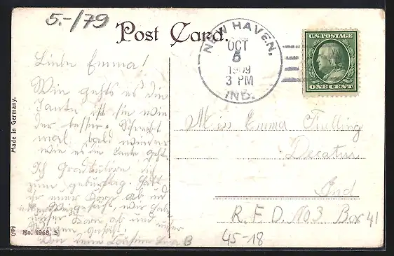 alte Ansichtskarte, gelaufen 1909, guter Zustand
