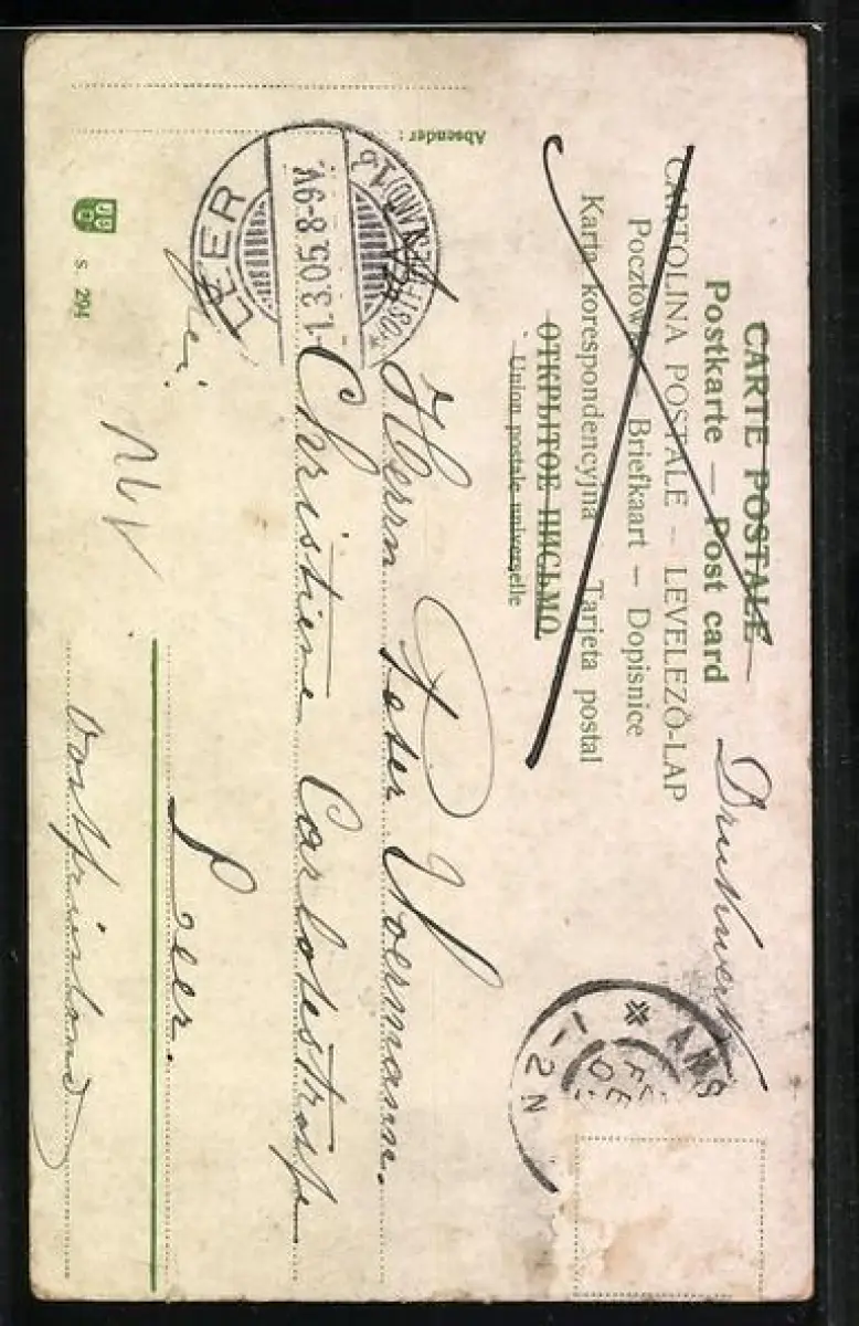 alte Ansichtskarte, gelaufen 1905, Briefmarke entfernt, Stempelspur, Eckknick links unten, Einriss untere Kante, Eckknick rechts oben