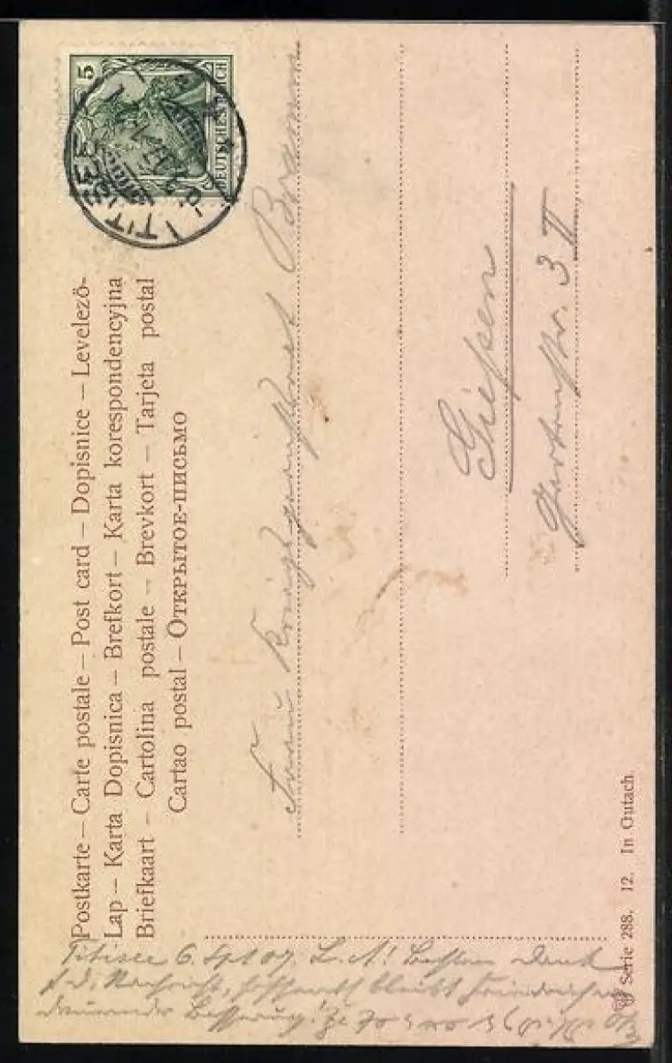 alte Ansichtskarte, gelaufen 1907, guter Zustand