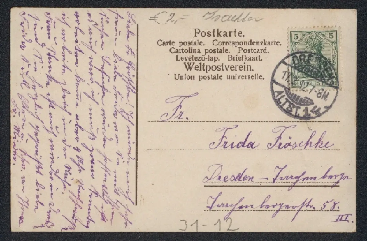 alte Ansichtskarte, gelaufen 1912, Abriebspur li. oben, guter Zustand