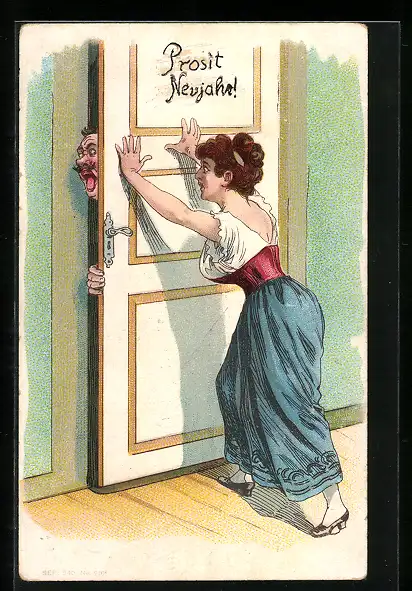 AK Frau klemmt einen Mann in der Tür ein, Erotik