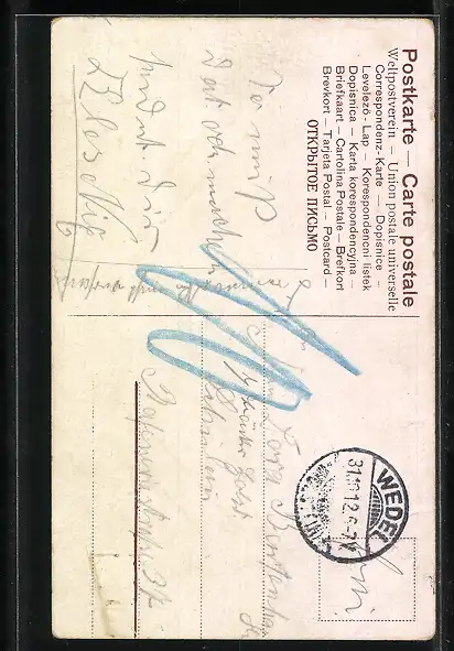 alte Ansichtskarte, gelaufen 1912, Ecken bestoßen, guter Zustand