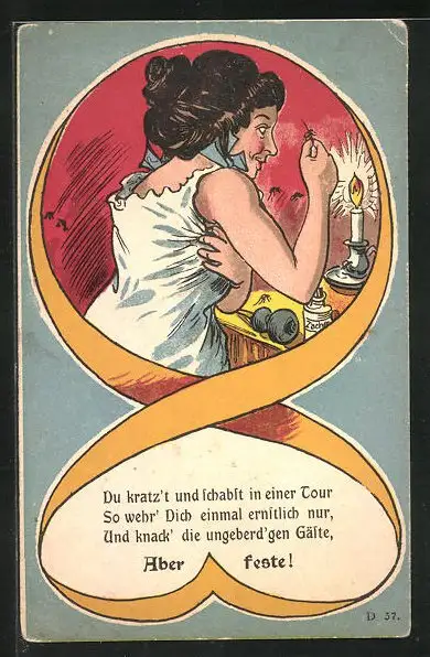 AK Frau kratzt sich, Du kratz`t und schabst in einer Tour, so wehr` Dich einmal ernstlich nur, frauenfeindlicher Humor