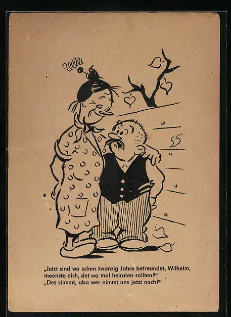 AK Frau meint zu Mann, da sie 20 Jahre befreundet sind, sollten sie heiraten, Mann fragt, wer sie denn noch nehmen würde