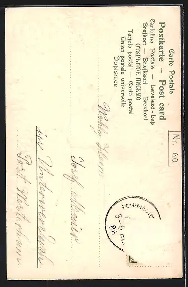 alte Ansichtskarte, gelaufen 1906, Briefmarke entfernt, rückseitig Oberflächenschaden, guter Zustand