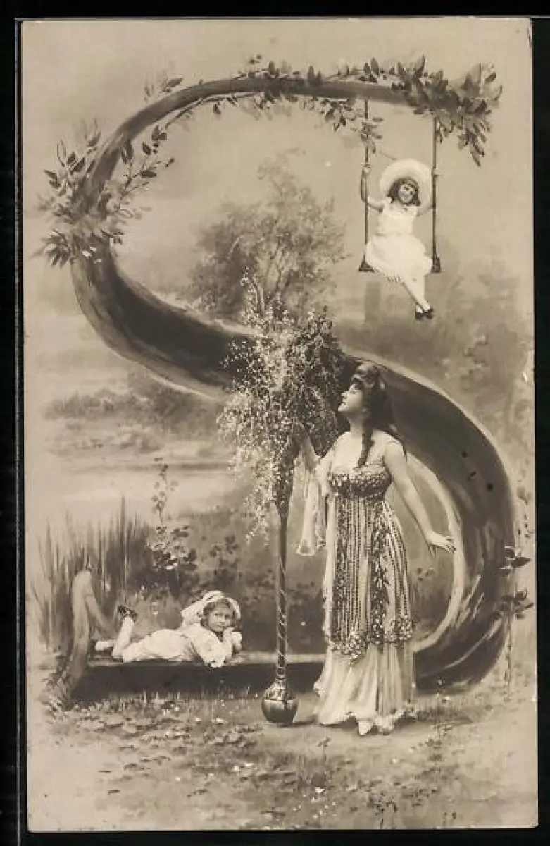AK Frau mit Kindern am Buchstaben S