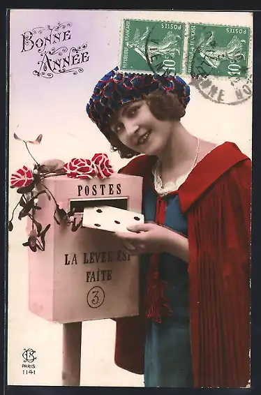 AK Frau mit Mütze wirft einen Brief in den Briefkasten