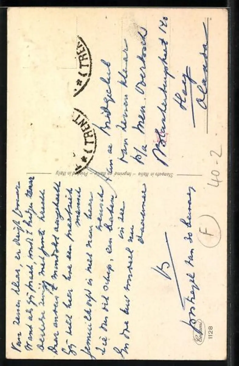 alte Ansichtskarte, gelaufen, Briefmarke entfernt, rückseitig Oberflächenschaden, guter Zustand