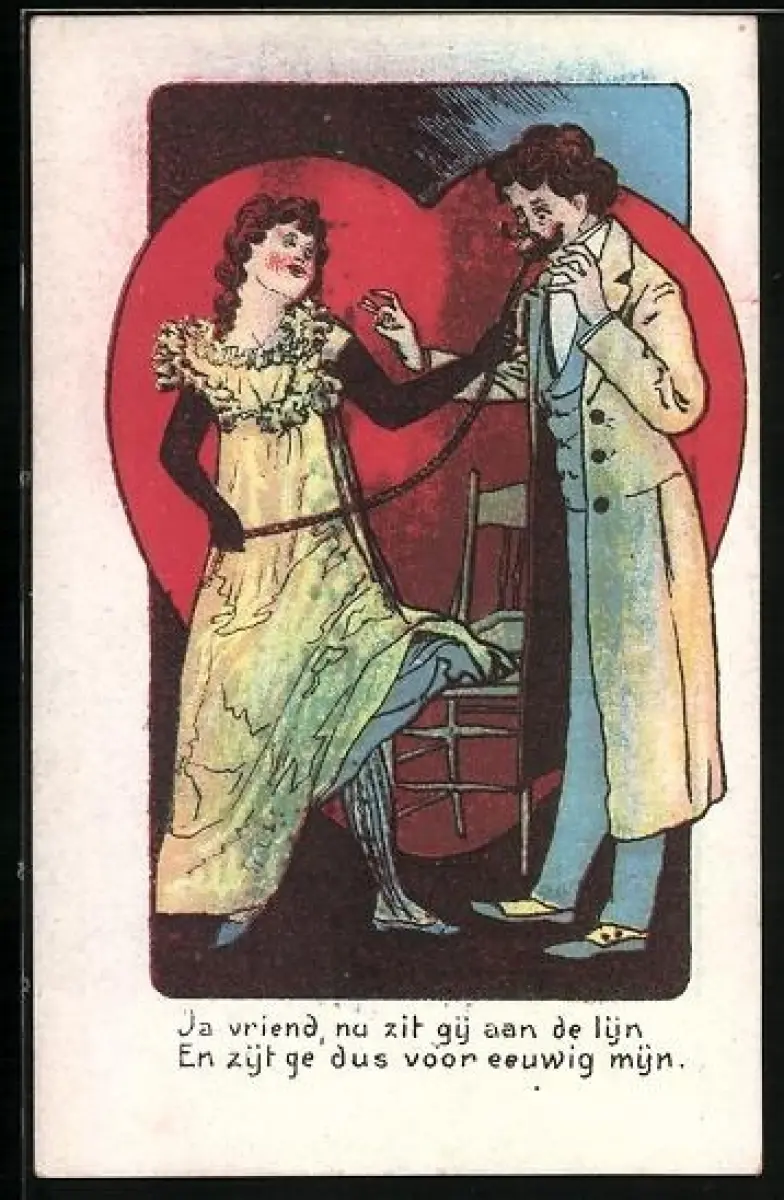 AK Frau nimmt einen Mann an die Leine