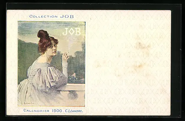 AK Frau raucht auf Veranda eine JOB-Zigarette, Jugendstil