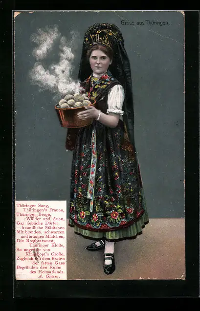 AK Frau serviert Thüringer Klösse in thüringischer Tracht