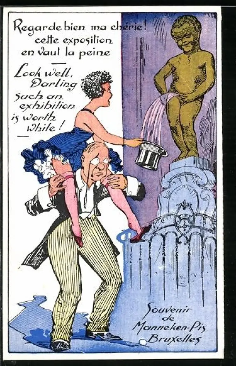 AK Frau sitzt auf den Schultern ihres Mannes, um Wasser als Souvenir mitzunehmen