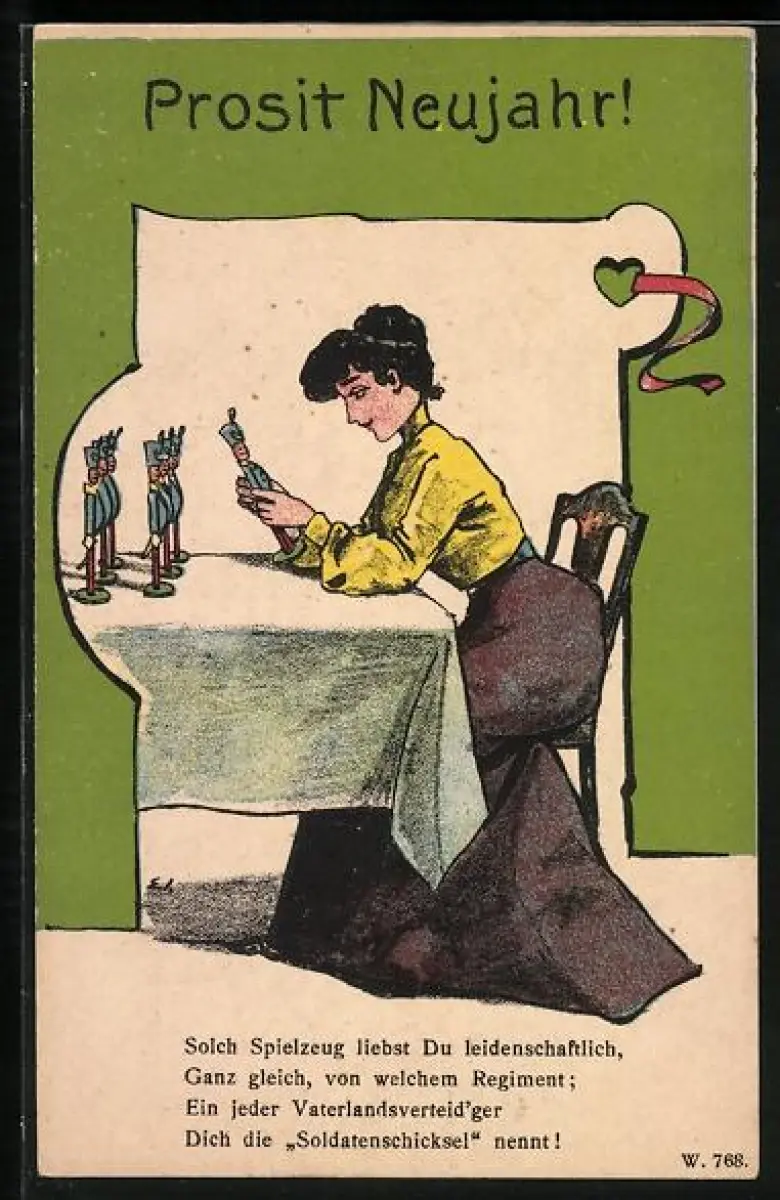 AK Frau spielt mit Spielzeugsoldaten, frauenfeindlicher Humor