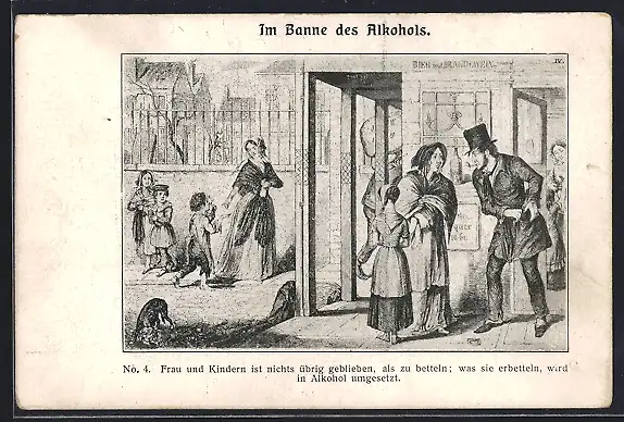 AK Frau und Kinder betteln nach Geld, um Alkohol zu kaufen
