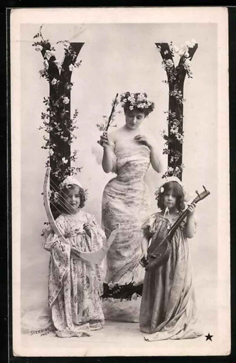 AK Frau und Mädchen mit Instrumenten vor dem Buchstanben U