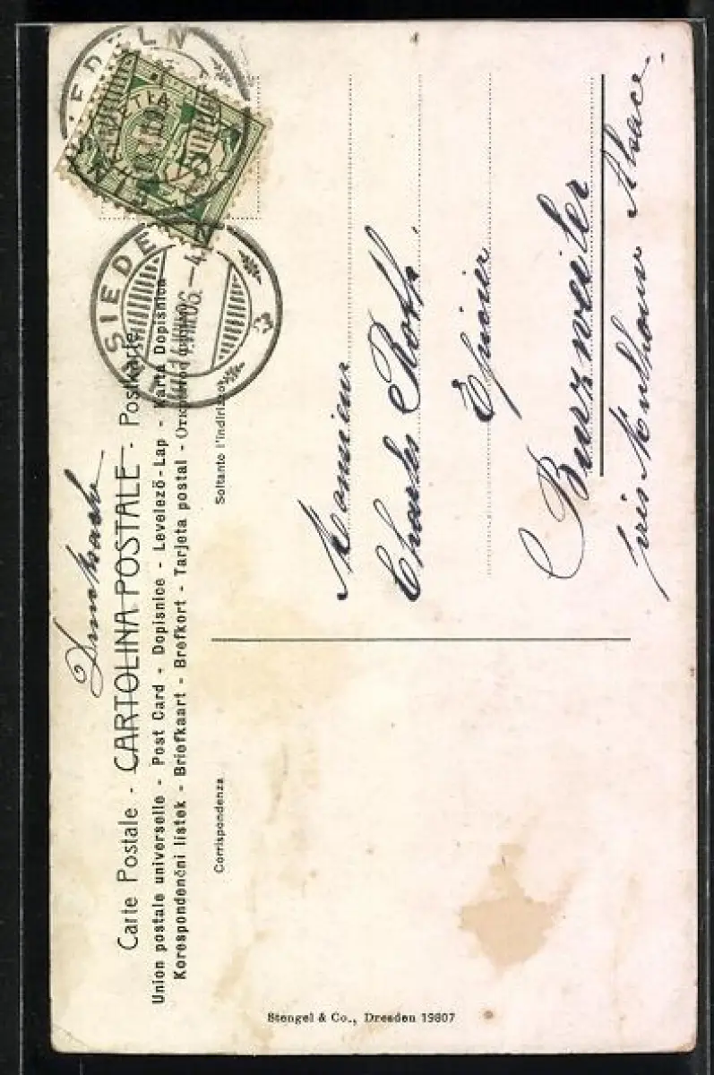 alte Ansichtskarte, gelaufen 1906, rückseitig Oberflächenschaden, Bugspur unten li., Eckknick unten re., guter Zustand