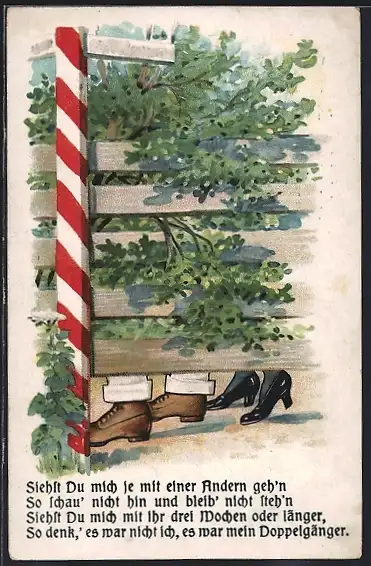 AK Frau und Mann verstecken sich hinter einer Hecke