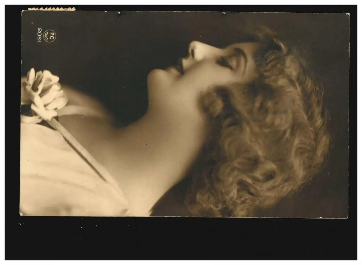 AK Frauen: Frau lächelnd mit Locken, weisse Blüte, Österreich