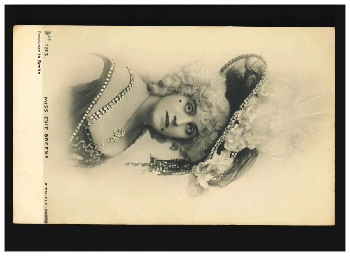 AK Frauen: Frau mit Federhut und Straßschmuck, Miss Evie Greene, ungebraucht