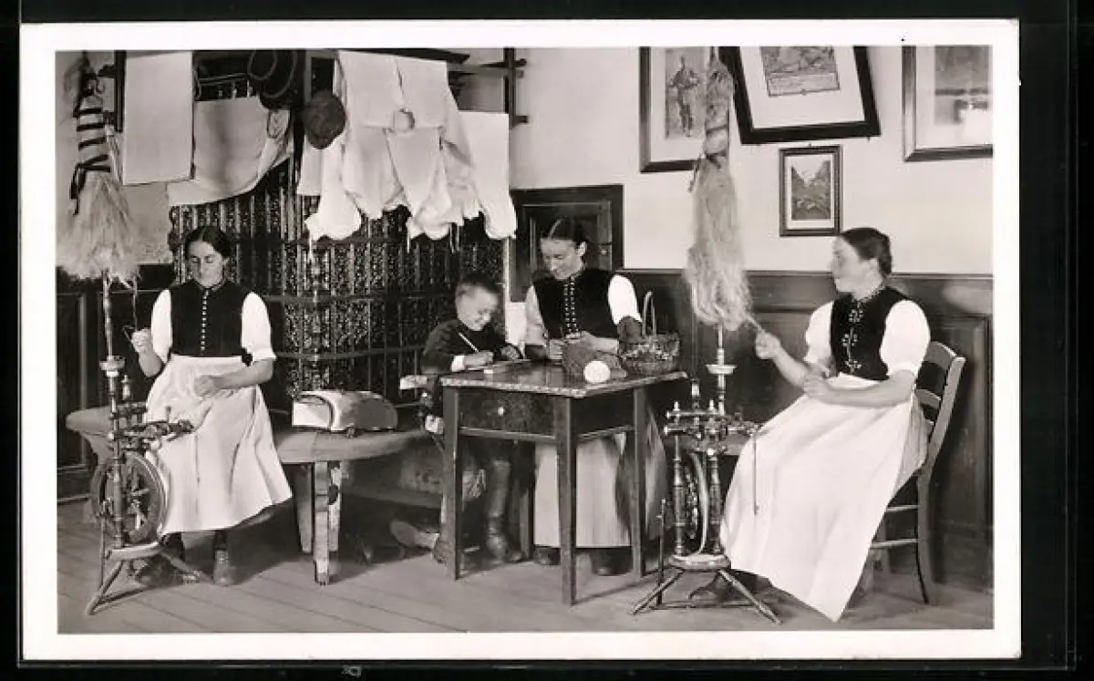 AK Frauen in Trachten in einer Schwarzwälder Spinnstube