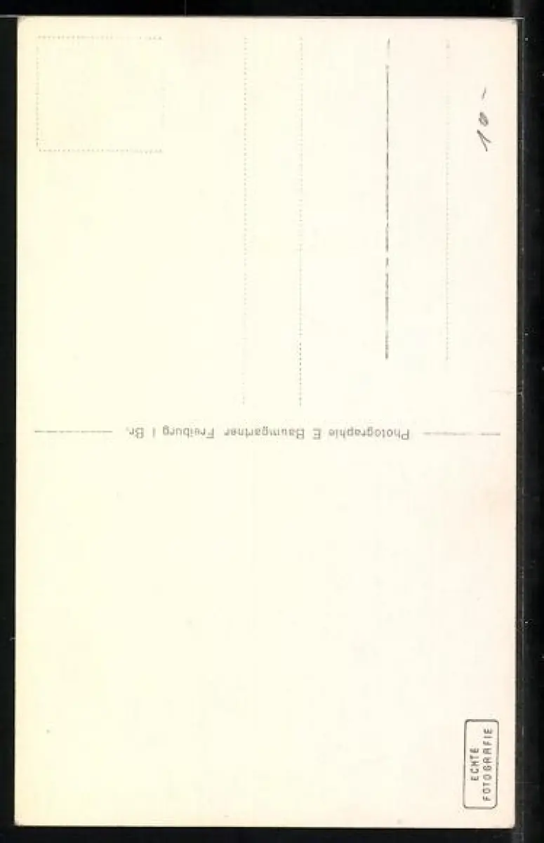Personenbezogene Daten auf der Rückseite der Karte wurden durch blauen Textmarker unkenntlich gemacht. Die blauen Stellen sind auf die Vorderseite durchgeweicht und wirken sich negativ auf das Postkartenfoto aus