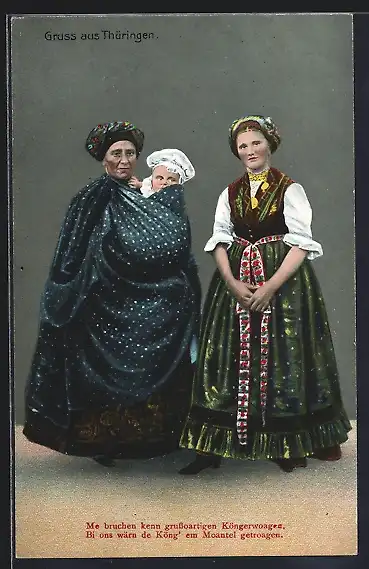AK Frauen in thüringischer Tracht mit Kind auf dem Arm, Vers