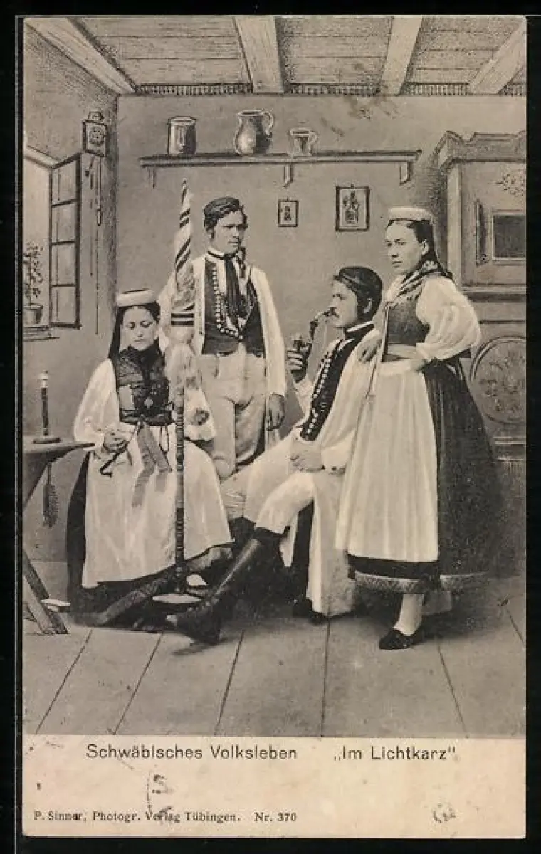 AK Frauen und Männer in schwäbische Tracht im Schein einer Kerze