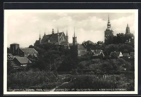 AK Frauenburg /Ostpr., Gesamtansicht des Domes mit Glockenturm