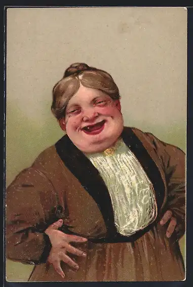 AK Frauenfeindlicher Humor, korpulente Frau heftig lachend