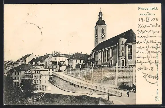 AK Frauenfeld, Katholische Kirche mit Strassenpartie