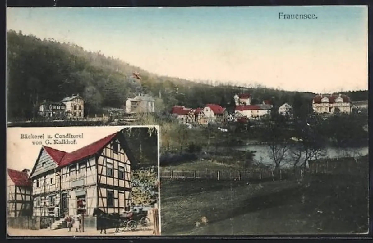 AK Frauensee, Bäckerei und Konditorei von G. Kalkhof, Totalansicht