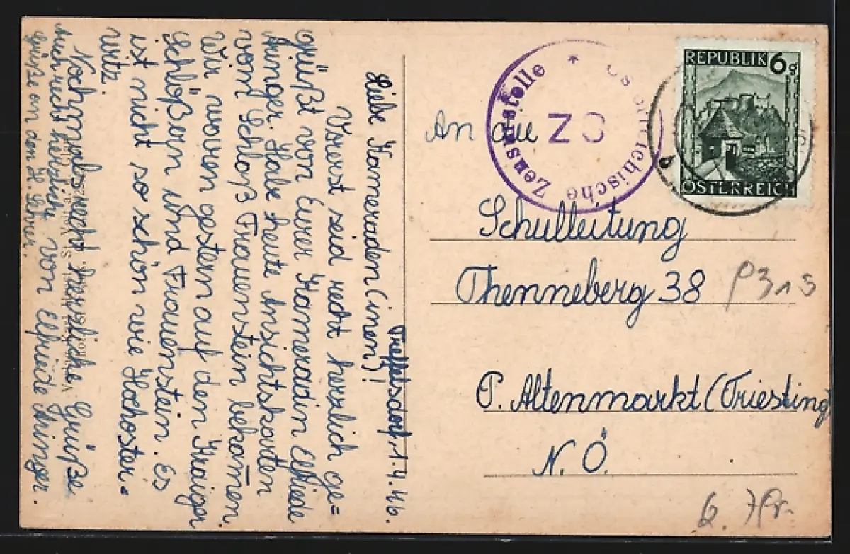 alte Ansichtskarte, gelaufen 1946, Eckknicke li. oben u. re. unten, guter Zustand