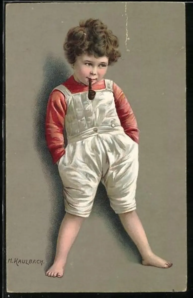 AK Frechdachs, Junge in Kniehose mit Pfeife