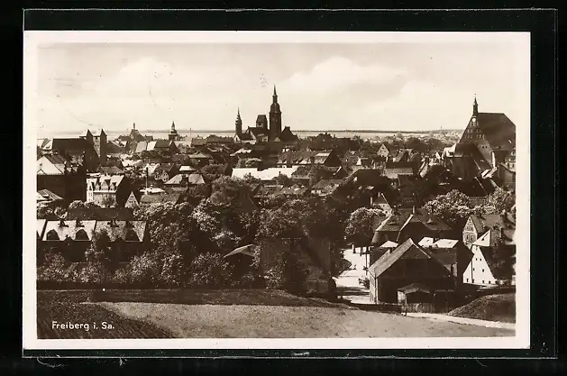 AK Freiberg i. Sa., Blick über die Dächer der Stadt