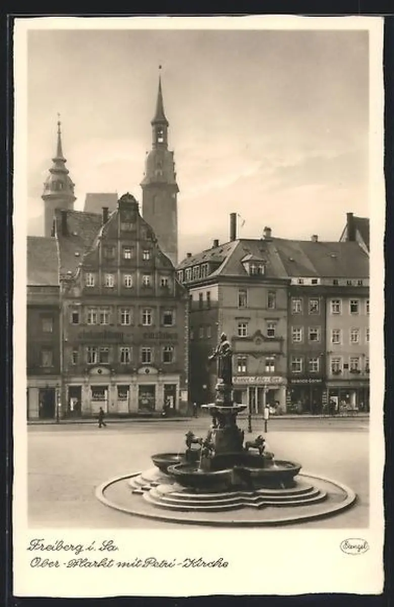 AK Freiberg i. Sa., Ober-Markt mit Petri-Kirche