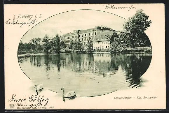 AK Freiberg i. Sa., Schwanenteich am Kgl. Amtsgericht