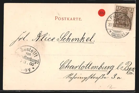 alte Ansichtskarte, gelaufen 1900, guter Zustand