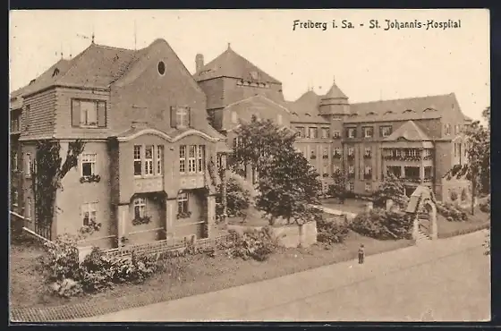 AK Freiberg i. Sa., St. Johannis-Hospital mit Strassenpartie