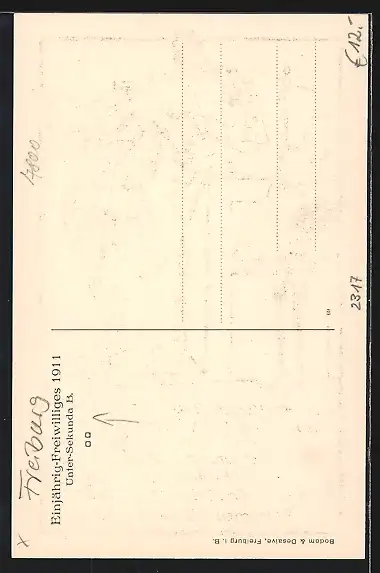 AK Freiburg / Breisgau, Absolvia Einjährig-Freiwilliges 1911 Unter-Sekunda B.