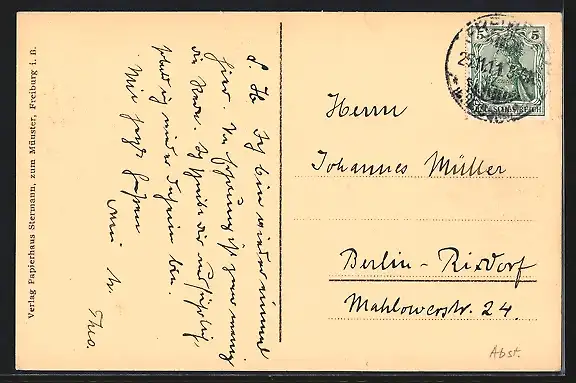 alte Ansichtskarte, gelaufen 1911, guter Zustand