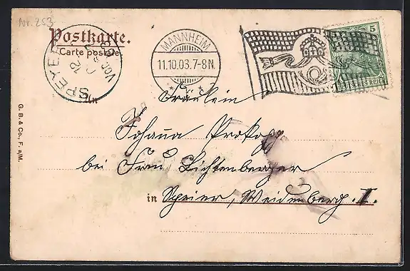alte Ansichtskarte, gelaufen 1903, Stempelspur, guter Zustand