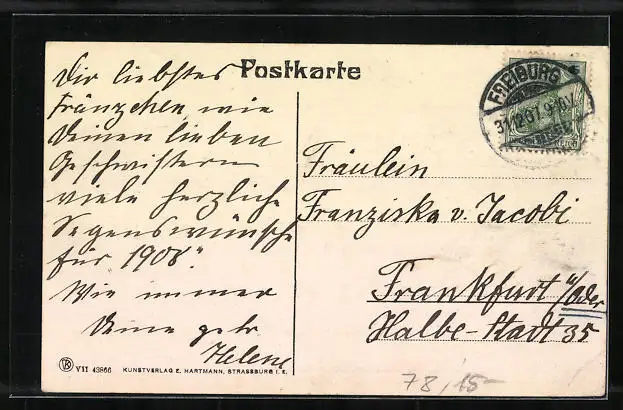 alte Ansichtskarte, gelaufen 1907, Stempelspur, Eckknick li. unten, guter Zustand