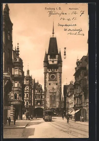 AK Freiburg i. B., Strassenbahn am Martinstor