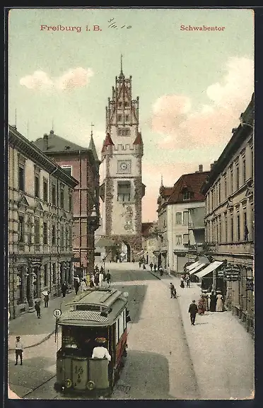 AK Freiburg i. B., Strassenbahn am Schwabentor