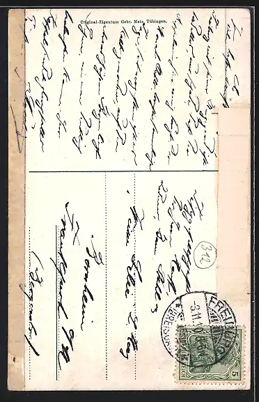 alte Ansichtskarte, gelaufen 1910, rückseitig Klebe- und Papierreste, guter Zustand