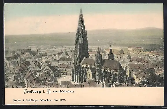 AK Freiburg i. B., Teilansicht mit Kirche vom Schlossberg