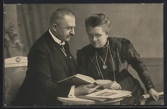 alte Ansichtskarte, gelaufen 1912, rückseitig Autographen des Paares, guter Zustand