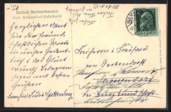 gelaufen 1912, rückseitig Autographen des Paares, guter Zustand