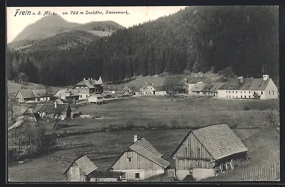 AK Frein a. d. Mürz, Ortsansicht mit Bergpanorama