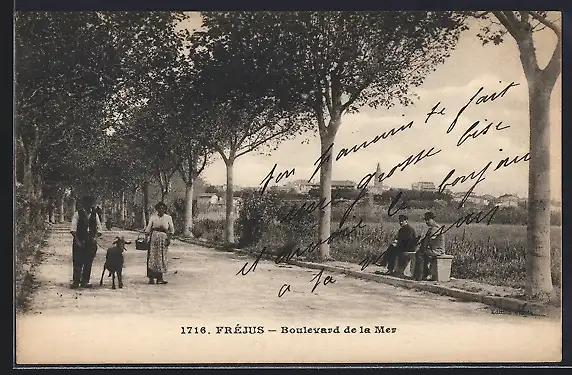 AK Fréjus, Boulevard de la Mer avec promeneurs et arbres alignés